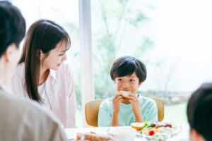 大切なのは、まず食べること。朝ごはんを食べることで身体や脳がしっかり働き、1日を元気に過ごせます。パンだけ、おにぎりだけ、バナナだけの日があってもOK!時間がある休日には家族で少し栄養を意識した朝食を心がけてみましょう。