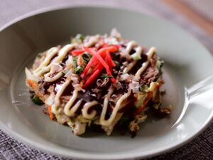 米粉は小麦粉の代用としてさまざまな料理に使えます。パンケーキや蒸しパンなどのおやつはもちろん、お好み焼きやチヂミなどの粉物、唐揚げの衣やホワイトソースのとろみづけなど、いつも小麦粉で作っているものは基本的に米粉に置き換えられます。